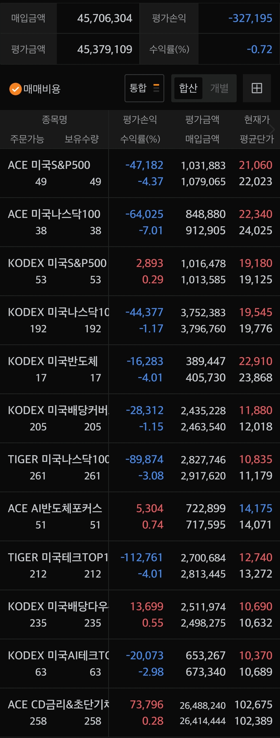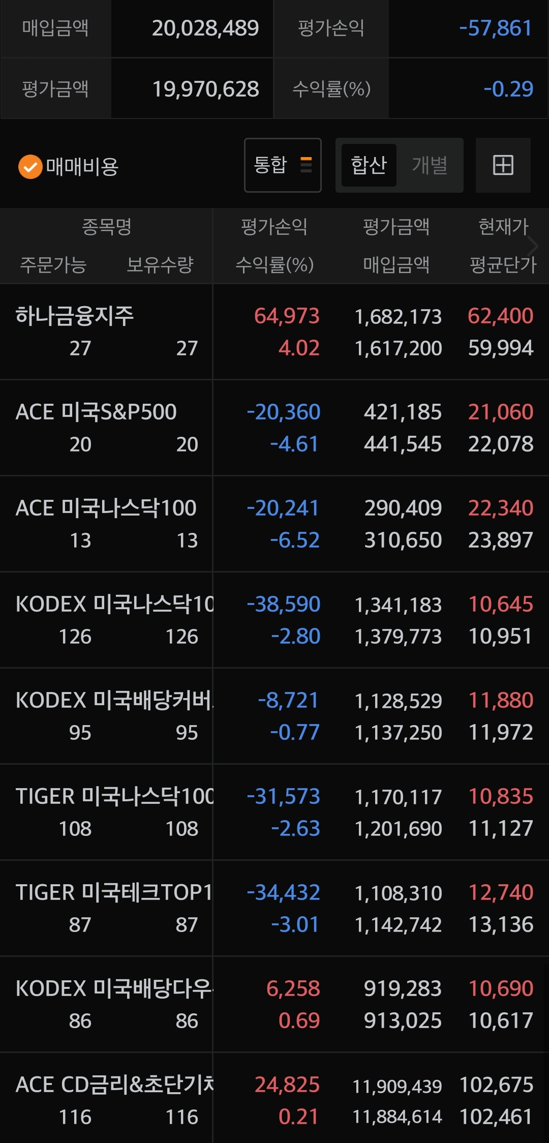 ISA는 월 10만 원 용돈 들어오면 테슬라 2배를 사모으고 있고 개인연금, 퇴직연금은 KODEX 미국나스닥 100, S&P500 본주에 투자하고 있습니다. ISA 같은 경우엔 커버드콜을 이용하여 2배 레버리지상품을 구매하고 있습니다.
