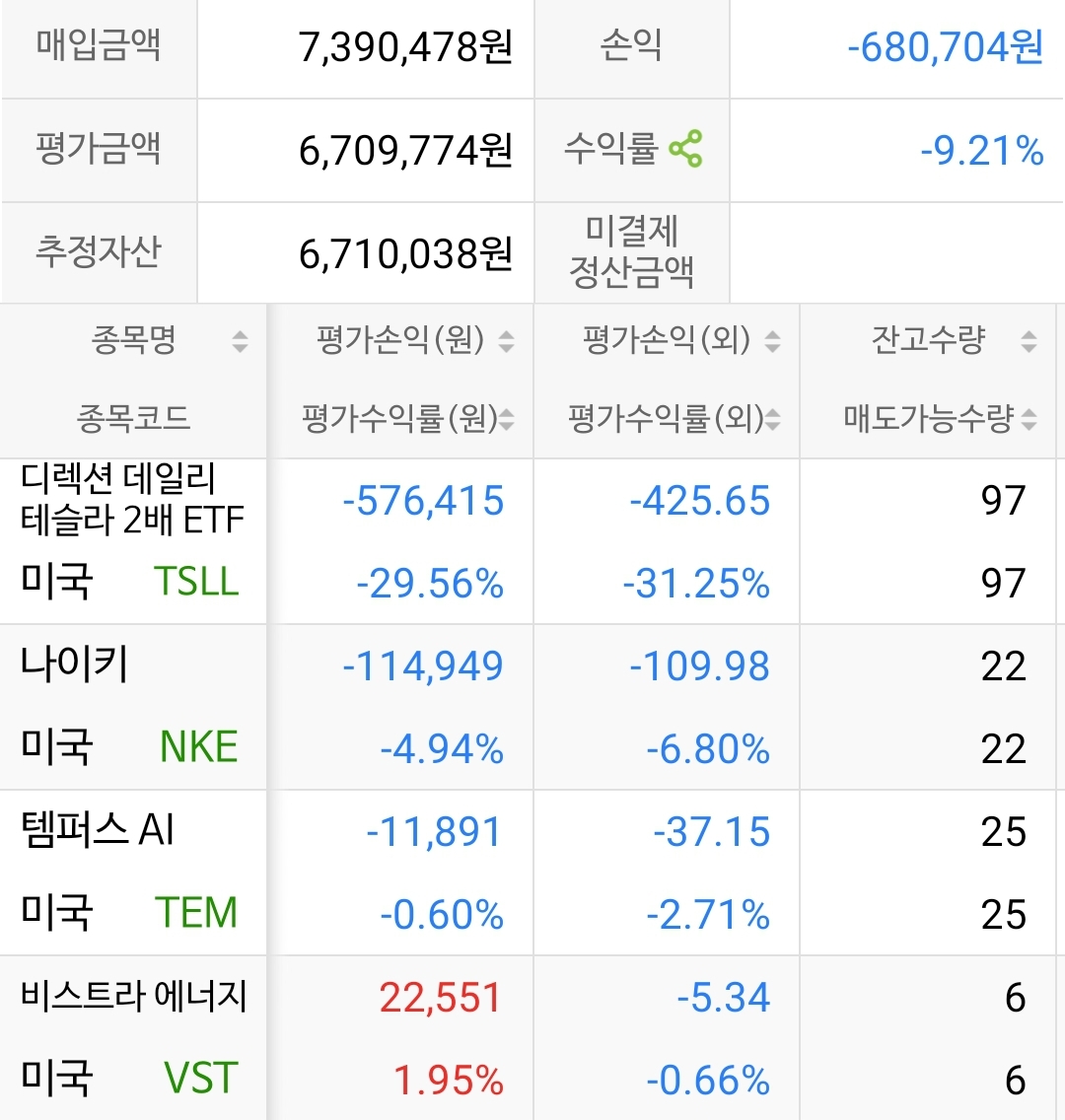 ISA는 월 10만 원 용돈 들어오면 테슬라 2배를 사모으고 있고 개인연금, 퇴직연금은 KODEX 미국나스닥 100, S&P500 본주에 투자하고 있습니다. ISA 같은 경우엔 커버드콜을 이용하여 2배 레버리지상품을 구매하고 있습니다.