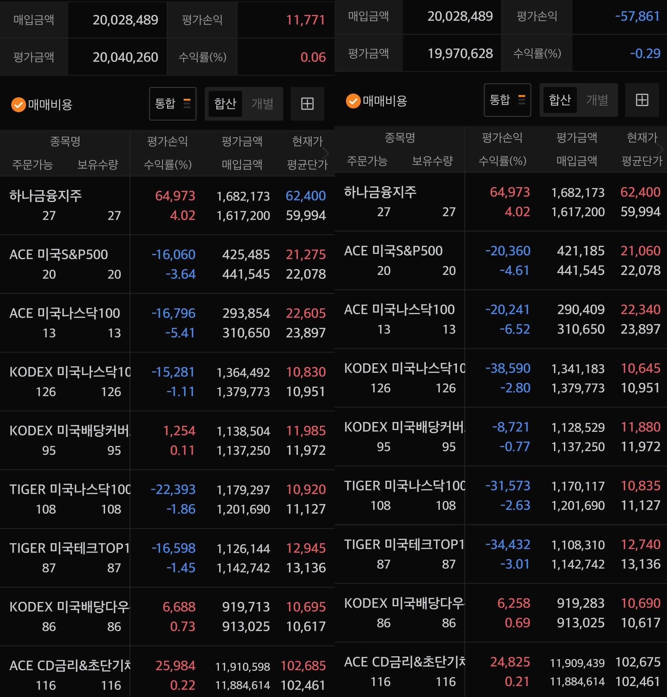 아직은 불확실성으로 인해서 주식이 반등해서 오른다고 말할 수는 없지만 고점에서 약-10% 정도 떨어지는 건 허다 하니 너무 정신적으로 힘들어하실 필요 없다고 말씀드리고 싶고 이럴 때 조금씩 더 수량을 담아간다는 생각 해주시면 좋습니다.