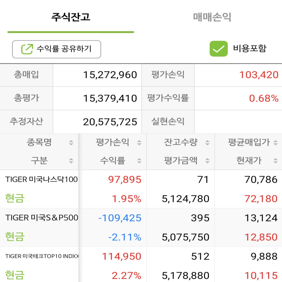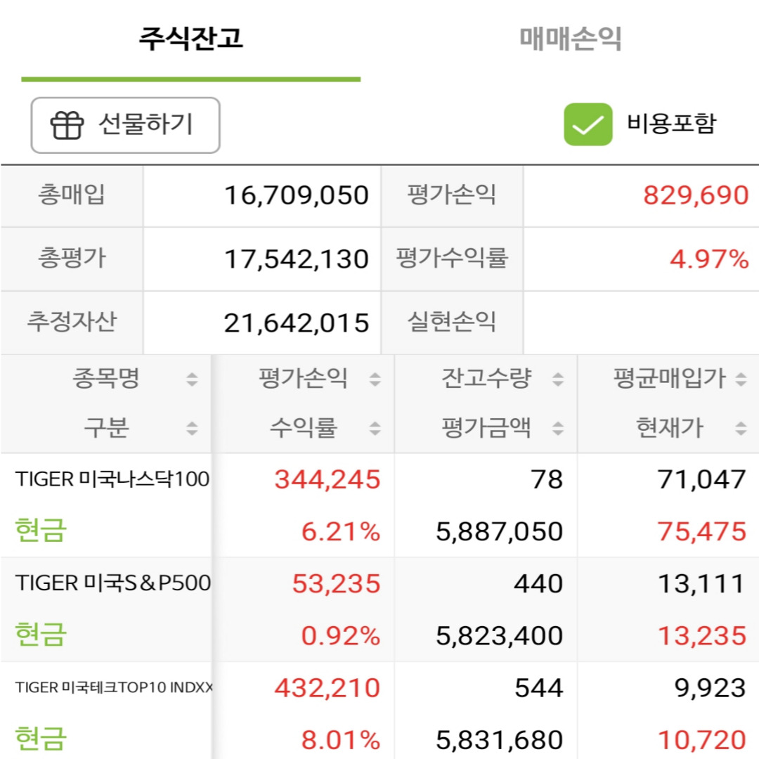 9개 사진을 업로드를 했는데요 보시면 총 매입가 조금씩 올라가고 있고 경기가 조금씩 풀리면서 수익률이 상향되는 모습을 보실 수 있습니다. 일봉차트 20일 선, 60일 선, 120일 선 닿았을 때 조금씩 조금씩 사모온 결과물입니다.