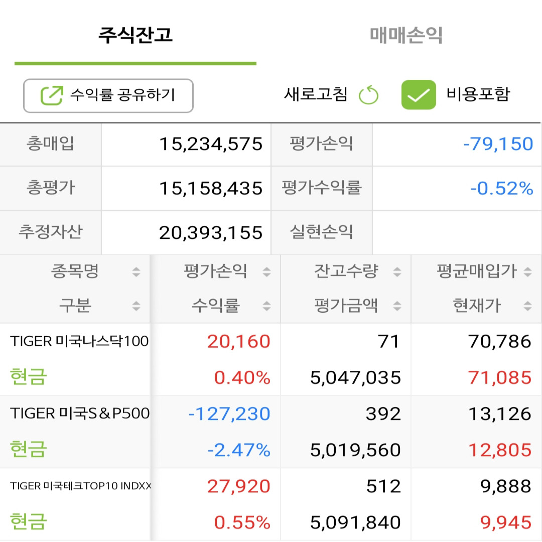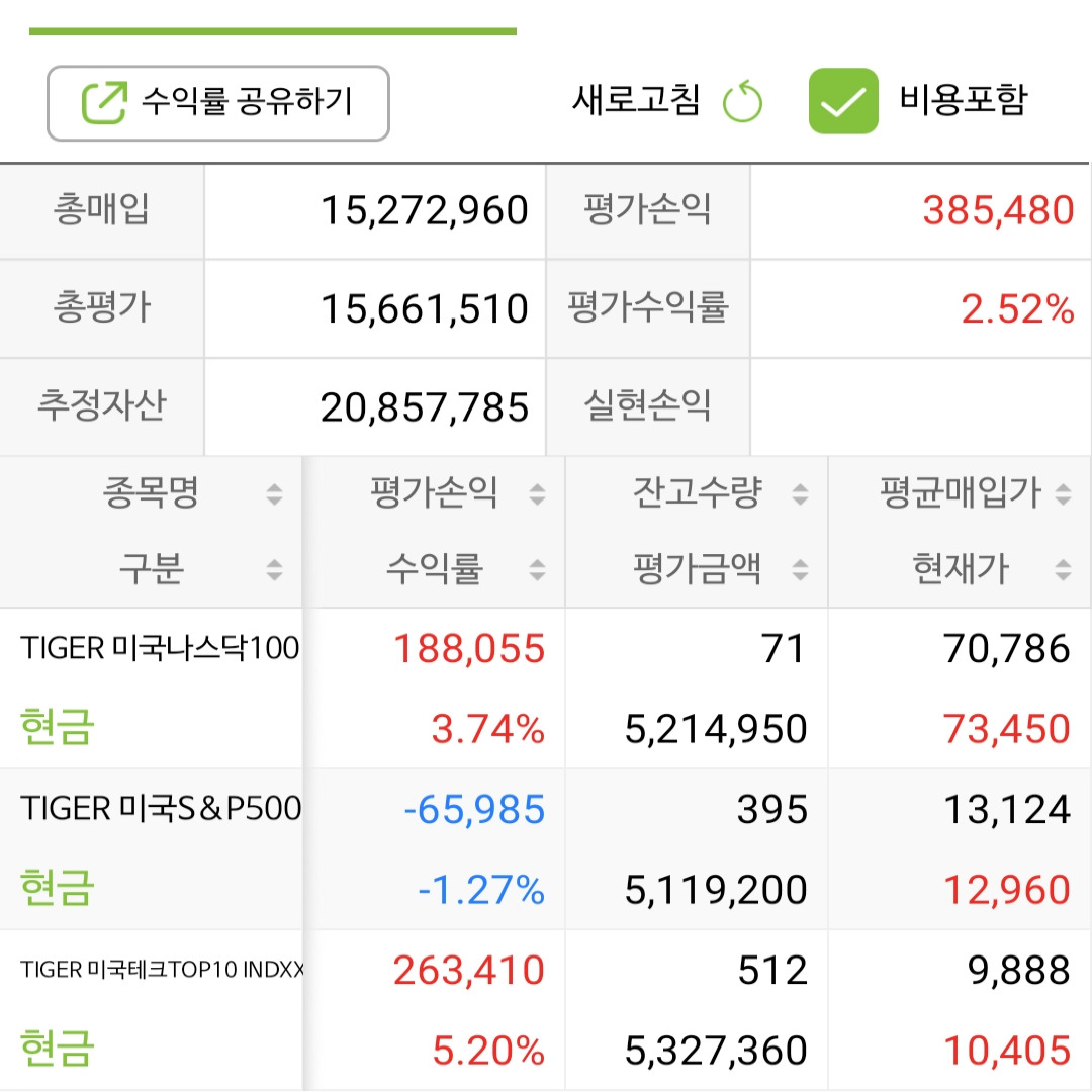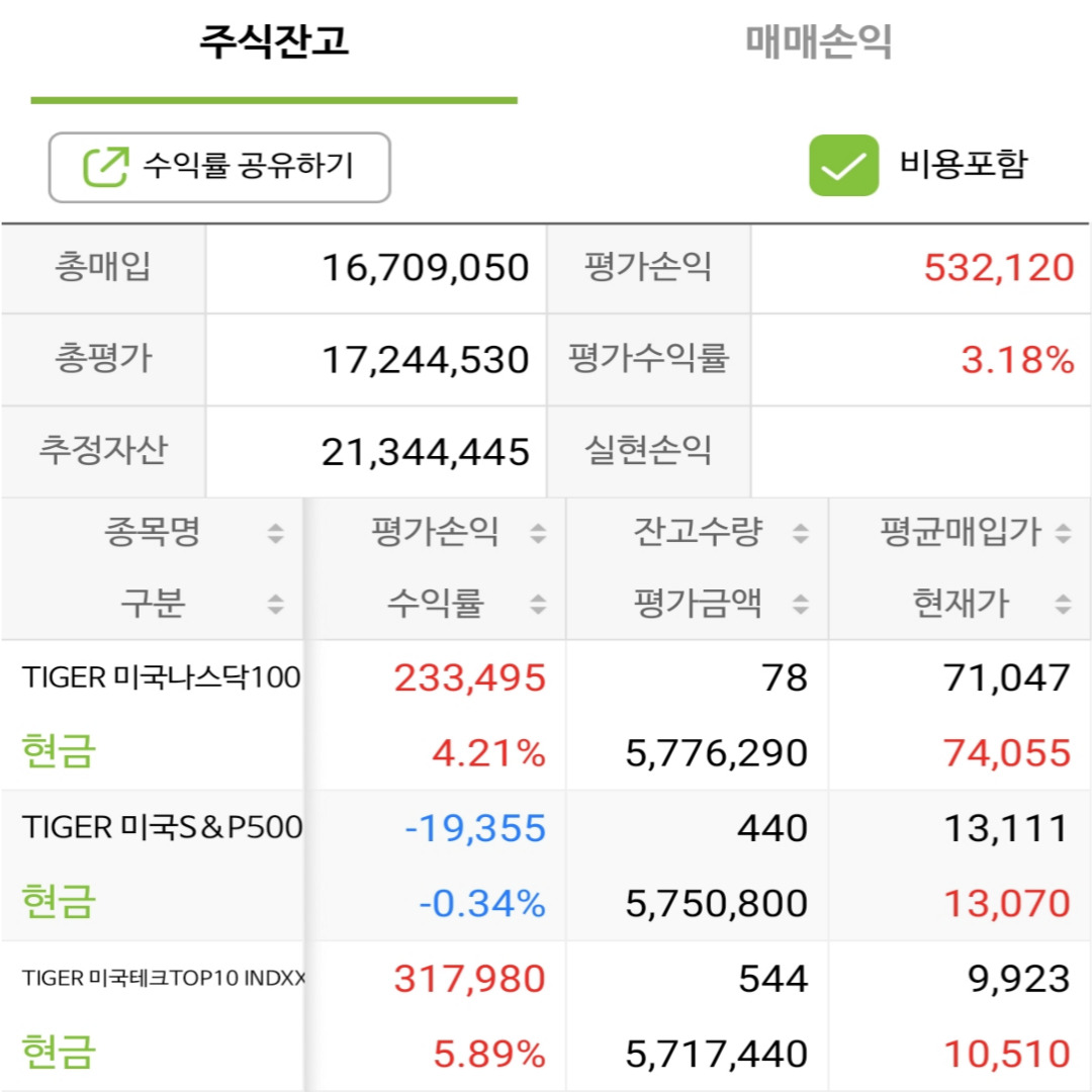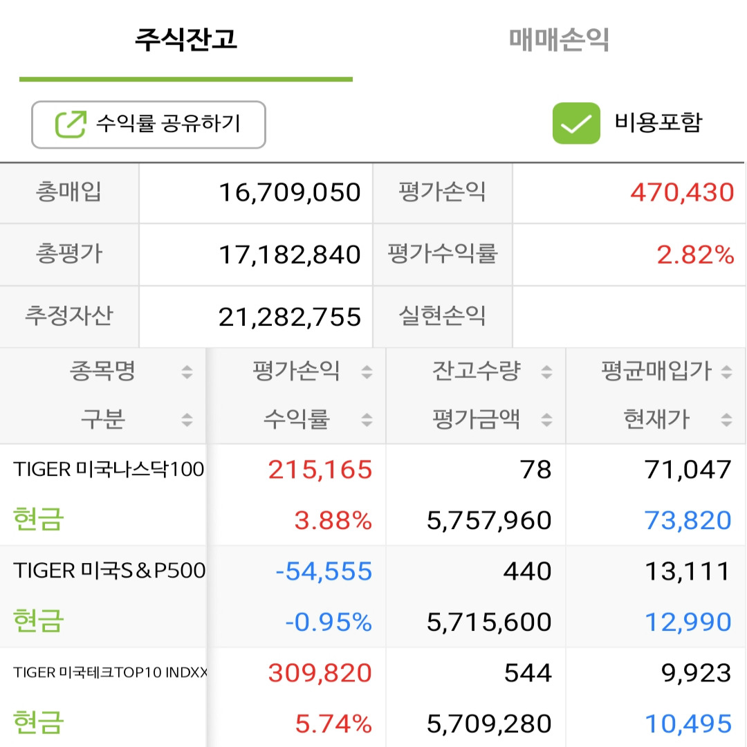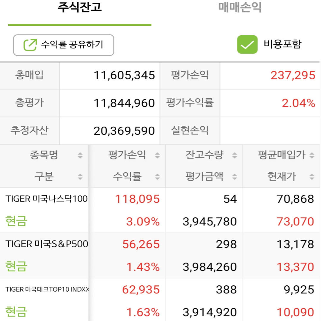 9개 사진을 업로드를 했는데요 보시면 총 매입가 조금씩 올라가고 있고 경기가 조금씩 풀리면서 수익률이 상향되는 모습을 보실 수 있습니다. 일봉차트 20일 선, 60일 선, 120일 선 닿았을 때 조금씩 조금씩 사모온 결과물입니다.